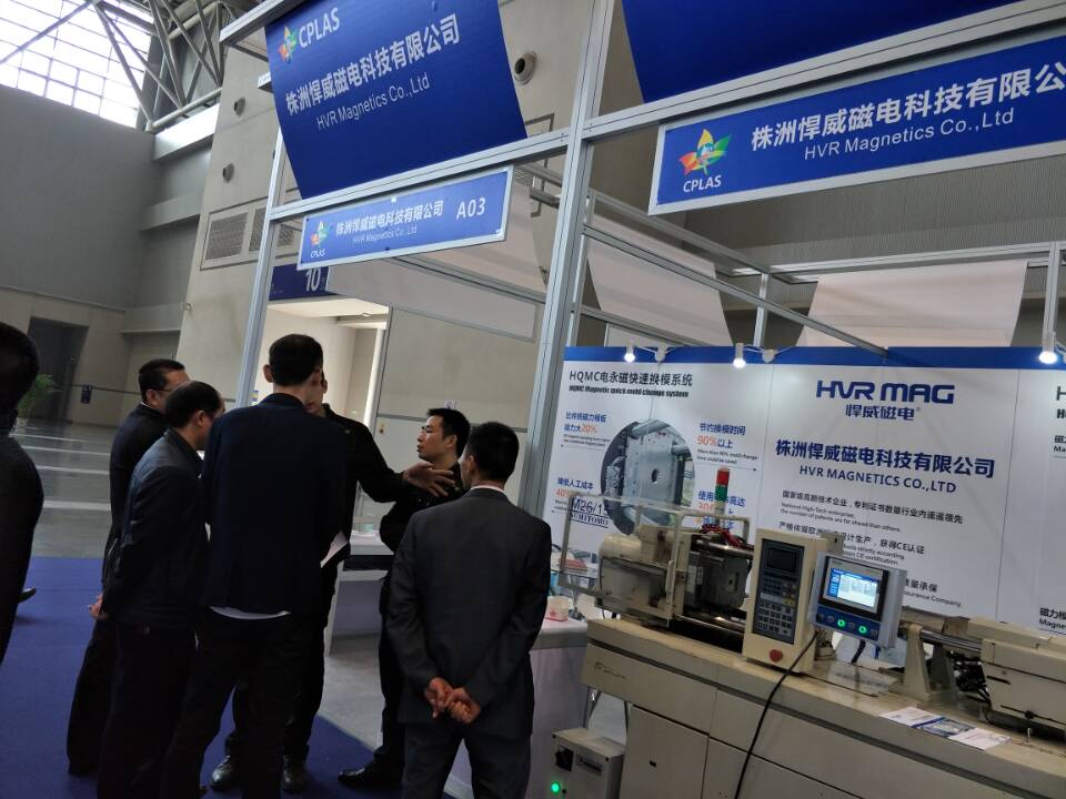 在已經(jīng)結(jié)束的第三屆重慶塑料展會上,株洲悍威磁電科技有限公司的磁力快速換模系統(tǒng)吸引了展會的各個知名企業(yè),我司在重慶片區(qū)當(dāng)?shù)氐目蛻艏娂娗皝碛^展,并且在看到我們實際產(chǎn)品運作之后達(dá)成初步合作協(xié)議。